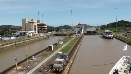 As we entered Gatun Locks, we could see this large car transporter ship entering the second lock alongside ours. It is amazing how little space these ships have on each side of the locks. In some cases this can be as little as two feet.